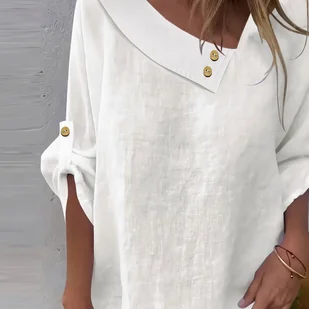 TEMU Stylowa Elegancka Koszula Damska w Asymetrycznym Dekolcie z Długim Rękawem na Wiosnę i – Luźny Krój, Jednokolorowa