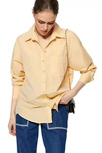 Trendyol Damska koszula basicowa oversize basic, tkana koszula z kołnierzem, BEŻOWY, 36