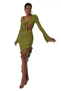 Trendyol Damska koszula damska, jednokolorowa, tkana, dwuczęściowy zestaw, ZIELONY, 8
