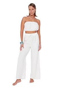 Trendyol Damska koszula dwuczęściowa, jednokolorowa, tkana, biały, 68