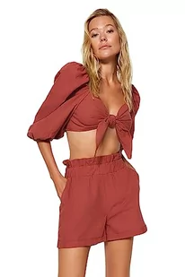 Trendyol Damska koszula dwuczęściowa, jednokolorowa, tkana, Cynamon, 36