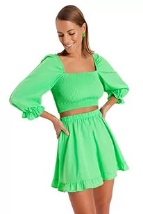 Trendyol Damska koszula dwuczęściowa, jednokolorowa, tkana, Jasnozielony, 62