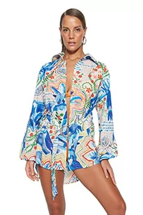 Trendyol Damska koszula o regularnym kroju basic, tkana koszula, Niebiesko-wielokolorowy, 62