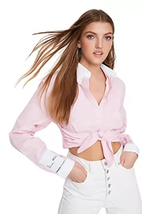 Trendyol Damska koszula o regularnym kroju basic, tkana koszula, Różowy-wielokolorowy, 32