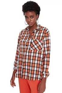 Trendyol Damska koszula oversize Basic z kołnierzem tkana koszula, pomarańczowy, 64