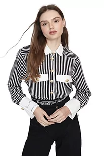 Trendyol Damska koszula oversize z podstawowym kołnierzem, Czarny, biały, 60