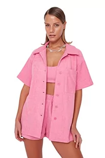 Trendyol Damska koszula z dzianiny o luźnym kroju z kołnierzykiem, fuksja, S