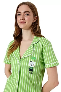 Trendyol Damska koszula z dzianiny w paski - spodnie zestaw piżamowy, zielony, M, ZIELONY, M