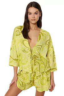Trendyol Damska koszula z grafiką - krótka piżama zestaw, żółty, 36, ŻÓŁTY, 62
