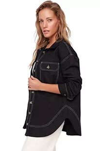 TRENDYOL Damska koszula z kołnierzem bluzowym, jednokolorowa, oversize, koszula, czarny, 36