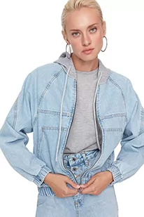 Trendyol Damska koszula z kołnierzem jednokolorowa kurtka oversize, niebieska, 38, NIEBIESKI, 64
