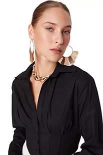 Trendyol Damska koszula z kołnierzykiem Glam dopasowana podstawowa koszula tkana, czarna, 36, Czarny, 62