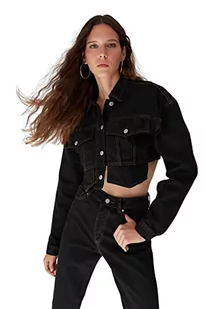 Trendyol Damska koszula z kołnierzykiem, jednokolorowa, krótka kurtka, płaszcz, czarny, M, Czarny