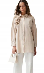 TRENDYOL KOSZULA BEŻOWA Z FALBANAMI NA RAMIENIU DŁUGI RĘKAW 40 5_A