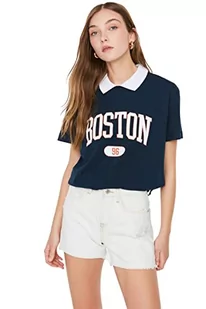 Trendyol Woman Regular Standard Crew Neck Knit T-Shirt Koszula damska, Navy Blue, S