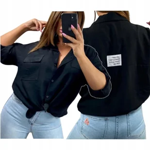 WISKOZOWA KOSZULA DAMSKA Z WIĄZANIEM nylon czarna modna kieszonka PLUS SIZE • BEZ PRASOWANIA • ODPORNA NA GNIECENIA • WŁOSKI STYL Ta koszula to połączenie st...