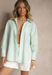 Zielona Bawełniana Koszula Oversize w Prążki Zdobiona Metaliczną Nicią Paserella