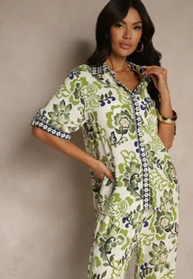 Zielona Koszula z Wiskozy w Kwiatowy Wzór Milineira