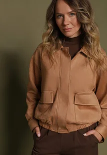 Beżowa Kurtka Przejściowa Bomberka z Imitacji Zamszu z Kołnierzykiem Ervila