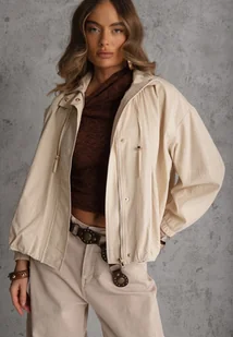 Beżowa Oversizowa Kurtka Przejściowa o Kroju Bombki z Bawełny i Wiskozy Birana
