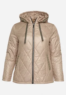 Beżowa Pikowana Kurtka Ozdobiona Geometrycznym Zdobieniem Nantina