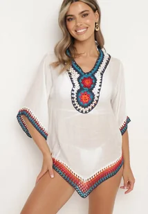 Biała Boho Bluzka Narzutka z Rękawem 3/4 Dimette