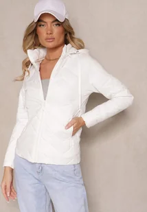 Biała Kurtka Przejściowa z Pikowaniem i Odpinanym Kapturem Leopia