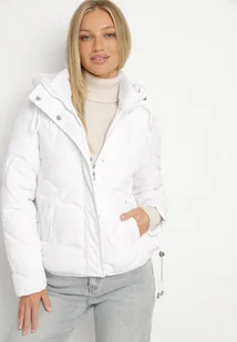 Biała Pikowana Kurtka z Kapturem i Bocznymi Zdobieniami Ollenea
