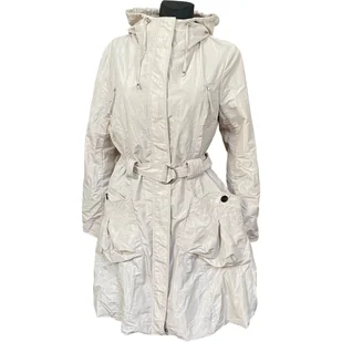 Biba Kurtka Damska Płaszcz z Kapturem Przeciwdeszczowy z Paskiem Biała Rozmiar 46