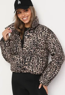 Brązowa Krótka Pikowana Kurtka w Panterkę Wykończona Ściągaczami Ivinia