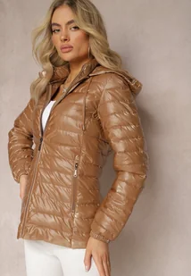 Ciemnobeżowa Metaliczna Kurtka z Pikowaniem i Kapturem Anaira
