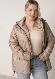 Ciemnobeżowa Przejściowa Pikowana Kurtka z Odpinanym Kapturem Nevistta