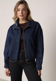 Ciemnoniebieska Jeansowa Kurtka Przejściowa z Bawełny o Kroju Bombki z Kołnierzykiem Jotima