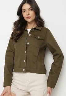 Ciemnozielona Bawełniana Kurtka Jeansowa Zapinana na Metalowe Guziki Auratia
