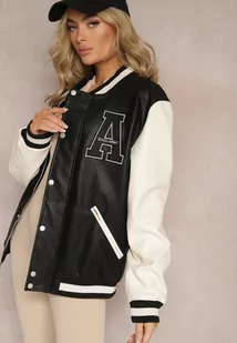Czarna Kurtka o Fasonie Bomberki z Ekoskóry z Dzianinowymi Rękawami Talvina
