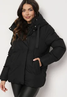 Czarna Kurtka Pikowana z Kapturem Vertigara