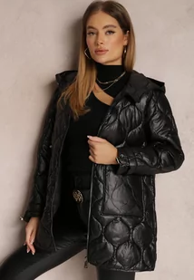 Czarna Kurtka z Geometrycznym Pikowaniem i Kapturem Meole