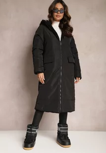 Czarna Ocieplana Kurtka Płaszcz Dwustronna z Kapturem Arisce
