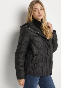 Czarna Pikowana Kurtka Przejściowa o Klasycznym Kroju z Kapturem Tavitte