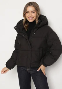 Czarna Pikowana Kurtka Puffer z Kapturem i Kieszonką przy Rękawie Galieana