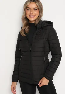 Czarna Pikowana Kurtka z Kapturem i Sznurkami Miviana