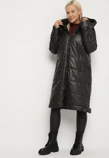 Czarna Przejściowa Kurtka Pikowana z Kapturem i Suwakami po Bokach Fesunela
