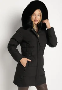 Czarna Zimowa Kurtka z Pikowaniem i Kapturem z Futrem Gisatte