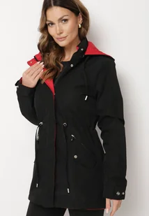 Czarno-Czerwona Dwustronna Kurtka Parka z Odpinanym Kapturem Ściągana Sznurkiem Camaria