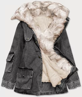 Damska kurtka jeansowa z futrzanym kołnierzem czarna/beż (br9585-1046)