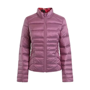 Damska kurtka pikowana Guess to połączenie elegancji i funkcjonalności, wykonana z materiałów pochodzących z recyklingu. Dwustronny design oferuje dwie stylizacje w jednej: klasyczna gładka strona lub modny print na drugiej. Dopasowany krój oraz wysoki kołnierz zapewniają szykowny wygląd. Kurtka posiada też praktyczne kieszenie boczne na dłonie.