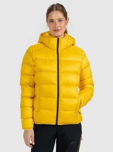 Damska kurtka puchowa trekkingowa 4F zapewnia wysoki komfort termiczny dzięki wypełnieniu z naturalnego puchu 90/10, które skutecznie zatrzymuje ciepło przy niewielkiej wadze. Jej hydrofobowa powłoka spowalnia wchłanianie wilgoci, a trwała tkanina rip stop zwiększa odporność na uszkodzenia podczas marszu. Model w kolorze żółtym oferuje wygodny, regularny krój, który nie krępuje ruchów na szlaku. Damska kurtka puchowa w góry ochrona w zmiennych warunkach