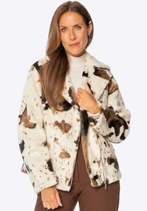 Efekt wow na co dzień: kurtka w zwierzęcy wzór z charakterem Postaw na styl, który przyciąga spojrzenia. Ta damska kurtka oversize z miękkiego, sztucznego futerka we wzór inspirowany krowimi łatami to niebanalne połączenie komfortu i mody. Luźny fason zapewnia swobodę ruchów i miejski luz, a prosty zamek z przodu podkreśla minimalistyczną formę. Kołnierz zaprojektowano tak, aby efektownie komponował się z całością, dodając charakteru każdej stylizacji.