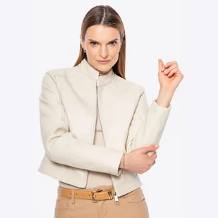 Skład: 100% ekoskóra, podszewka: 100% poliester. Wygodne i funkcjonalne rozwiązania: Klasyczna stójka: Elegancki element, który podkreśla ponadczasowy styl kurtki oraz zapewnia dodatkową ochronę przed chłodem.