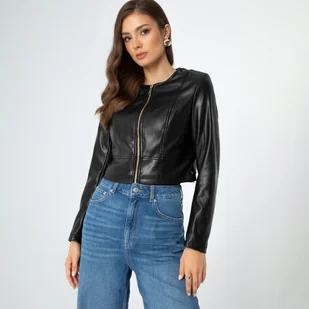 Klasyczna damska kurtka ze skóry ekologicznej Odkryj nowy wymiar elegancji z naszą damską kurtką – doskonałym połączeniem stylu, komfortu i nowoczesnych rozwiązań. Wykonana z wysokiej jakości ekoskóry, łączy luksusowy wygląd z ekologicznym podejściem, oferując Ci modowy wybór. Jej krótki, taliowany krój pięknie podkreśla sylwetkę, dodając kobiecego uroku i elegancji. Podszewka z poliestru gwarantuje miękkość i trwałość, a zapięcie na suwak łączy funkcjonalność z klasycznym stylem. Model bez kieszeni przyciąga wzrok minimalistycznym designem, idealnie wpisując się w aktualne trendy mody.